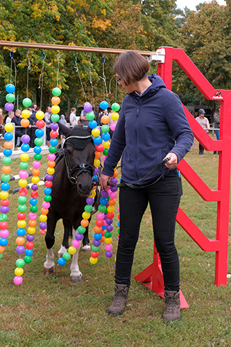 Unschuldige Kulleraugen und kleine Öhrchen – „Ich mag die Ehrlichkeit der Shetlandponys: Wenn Du die auf Deiner Seite hast, dann tun die Dir jeden Gefallen“, sagt Andreas Gössling, Gespannfahrer aus Gronau, und nimmt die Leinen auf. Der Tigerscheckhengst Jano und Wallach Wollo ziehen an und trippeln, nein – traben los. „Auf keinen Fall sollte man sie unterschätzen“, ruft Andreas Gössling auf dem Weg zum Kegelfahren. Kegel- und Dressurfahren für Ein- und Zweispänner, Springen an der Hand, Kostümreiten, Möhrenbeißen, Vorführwettbewerbe, Führzügelklasse, Geschicklichkeits- und Gelassenheitsübungen stehen beim zweiten Shetty- Sporttag in Dörenthe im Münsterland auf dem Programm. Teilnehmen dürfen alle Ponys bis Stockmaß 120 Zentimeter – Shetlandponys, Deutsche Partbread Shetlandponys, Classic Ponys oder ähnliche. 86 genannte Ponys verzeichnet der Zucht-, Reit- und Fahrgemeinschaft Dörenthe e.V.. Pro Pony und Start rechnen die Veranstalter mit vier bis fünf Begleitpersonen – alle trinken Limo, Bier oder Kaffee, essen Kuchen und Würstchen und füllen so die Vereinskasse. „Viele haben ihre Shettys beim Zuschauen dabei – es sind richtige Familienmitglieder“, sagt Ulla Böhner, Geschäftsführerin des Vereins. Bernhard Breckweg ergänzt: „So kamen wir auf die Idee mit dem Shetty- Sporttag: ein entspannter Tag ohne Druck, bei dem Kinder Spaß haben, Eltern erste Begegnungen mit Pferden erleben und die ganze Familie aktiv sein kann.“